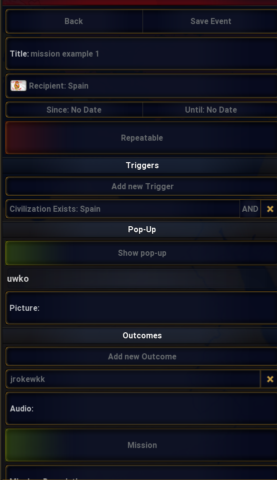 If i make new civilization by event (for instance Bourbon Spain from Habsburg Spain) and I will create mission for this Bourbon Spain, this mission will not show up.